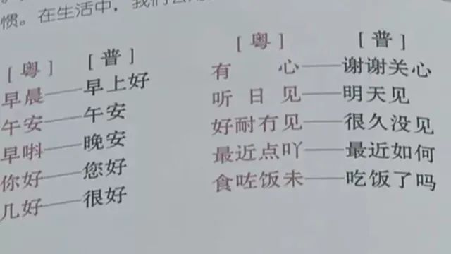 广州首本粤语教材 | 360kan.com 以粤语里的广州话为例,“见”、“精”两组的8个声母至少对应着普通话的9个声母,其中的对应关系画出来就像渔网一样。比如,广州话“高”和“金”声母一样,与“尖”完全不同;而普通话里,“金”和“尖”声母一样,又与“高”完全不同,分分合合。但好在,北京话和广州话都是从古汉语音系变出来的,是亲戚,它们混乱的现象背后有一个潜藏的对应公式。只需要这一个公式,就可以基本解释表面上的混乱关系。
